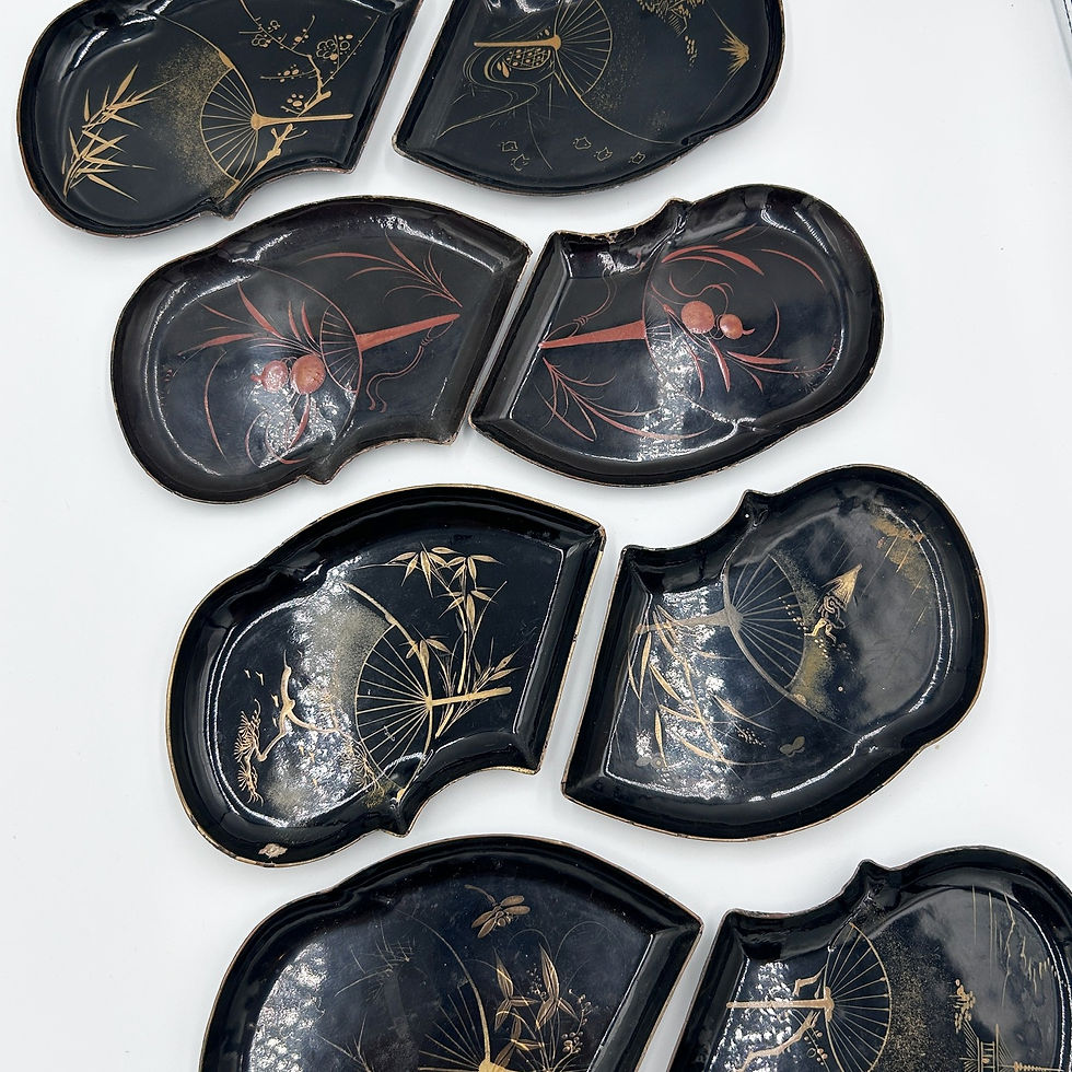 Wyjątkowy zestaw naczyń lakowych do serwowania sushi/przekąsek, Japonia, lata 19