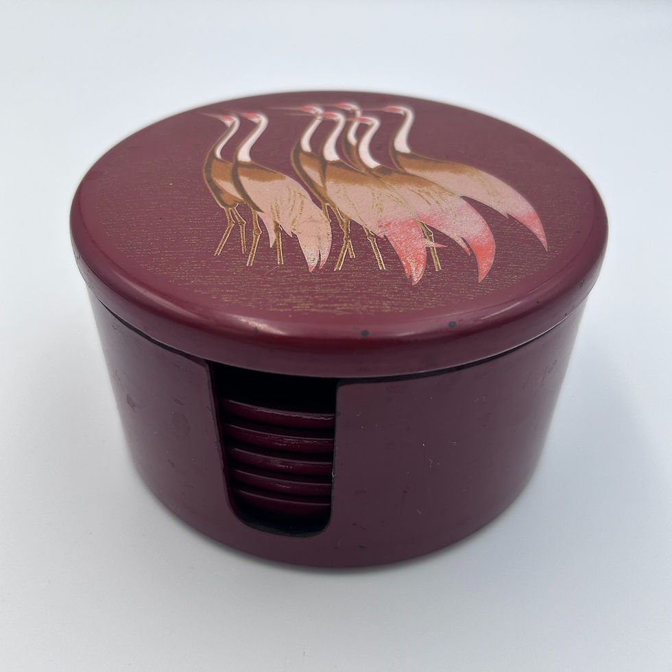 Talerzyki deserowe/podstawki z laki z żurawiami, Japonia, II poł. XX w.